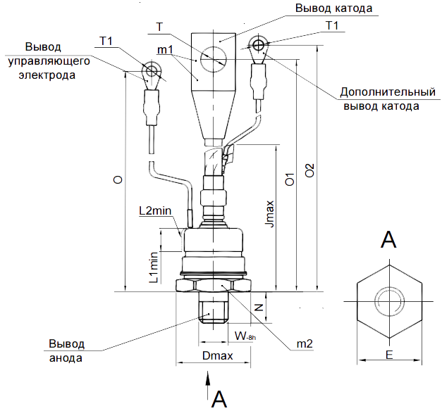 Масса тиристора не более 298 г.